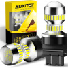 Why would you like these bulbs? Resembling halogen bulb shape design and sequencing 54 pieces 4014-SMD LED chips precisely around the 3157 led bulb. Delivering 360° high luminous efficiency with whole 6000K white light, see more clearly and safely when reversing 5.5W per 3157 bulbs. Only 1/4 energy consumption of the original...